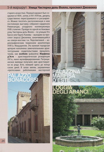Проспект Корсо Эрколе I д'Эсте (Corso Ercole I d'Este) - главная ось, отмечающая массовое расширение городской застройки, предпринятое герцогом Эрколе I по проекту Бьяджо Россетти в начале XVI в. Проспект, возникший на базе старой улицы, называвшейся Ангельской, и ныне богатый роскошными зданиями, начинается с дворца Монте ди Пьета (Palazzo del Monte di Pieta) XVIII в., за которым следуют дворцы Джильоли-Варано (Palazzo Giglioli Varano) и Джулио д'Эсте (Palazzo Giulio d'Este) эпохи Возрождения.