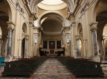 Трехнефный просторный интерьер (68 х 47,5 м) распахивается в высокий купол (48 м). На главном алтаре - высокая сень в виде храмика, в апсиде - резные хоры, вырезанные инкрустатором Марино Франчезе. Перед алтарем - ковчег современной работы, с мощами преподобного Павла Фивейского, именуемого в Италии Павлом-отшельником.