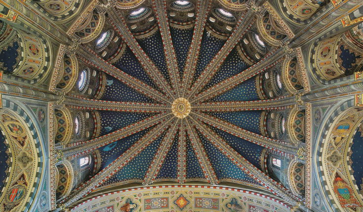 В этом грандиозном здание ощущается сильное влияние храма Святого Марка из Венеции, но в то же время вся внутренняя часть храма имеет готический стиль. Эти различия и противоречия в архитектуре храма объединены в единое оригинальное целое, что в свою очередь выделяет нашу базилику среди других средневековых храмов.