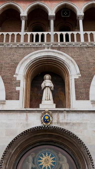 Статуя Святого Антония и лоджия на фасаде собора Святого Антония в Падуе (в центре).
