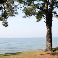 сосновые заросли, античные развалины храма Зевса, дикие кабанчики и прочие звери. Первый пляж
