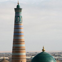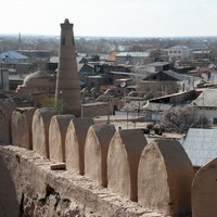 Памятник великому учёному Аль-Хорезми (Al-Xorazmiy Monumenti) • Медресе и минарет Биканжан-бика • Панорама западных ворот Ата-Дарваза, медресе Мухаммада Аминхана и западных стен Ичан-КалыСмотрите ещё по теме