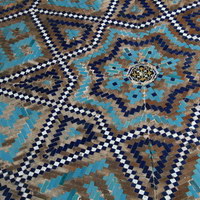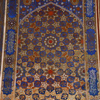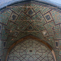 минареты и фасад покрыты мозаиками с геометрическими орнаментами. Внутри медресе Улугбека всё те