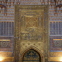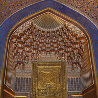 Золотая мечеть Тилля-Кари • Молитвенная ниша михраб • Кафедра проповедника минбар • Купола мечетиМедресе Улугбека (Ulug`bеk Mаdrаsаsi) на площади Регистан в Самарканде